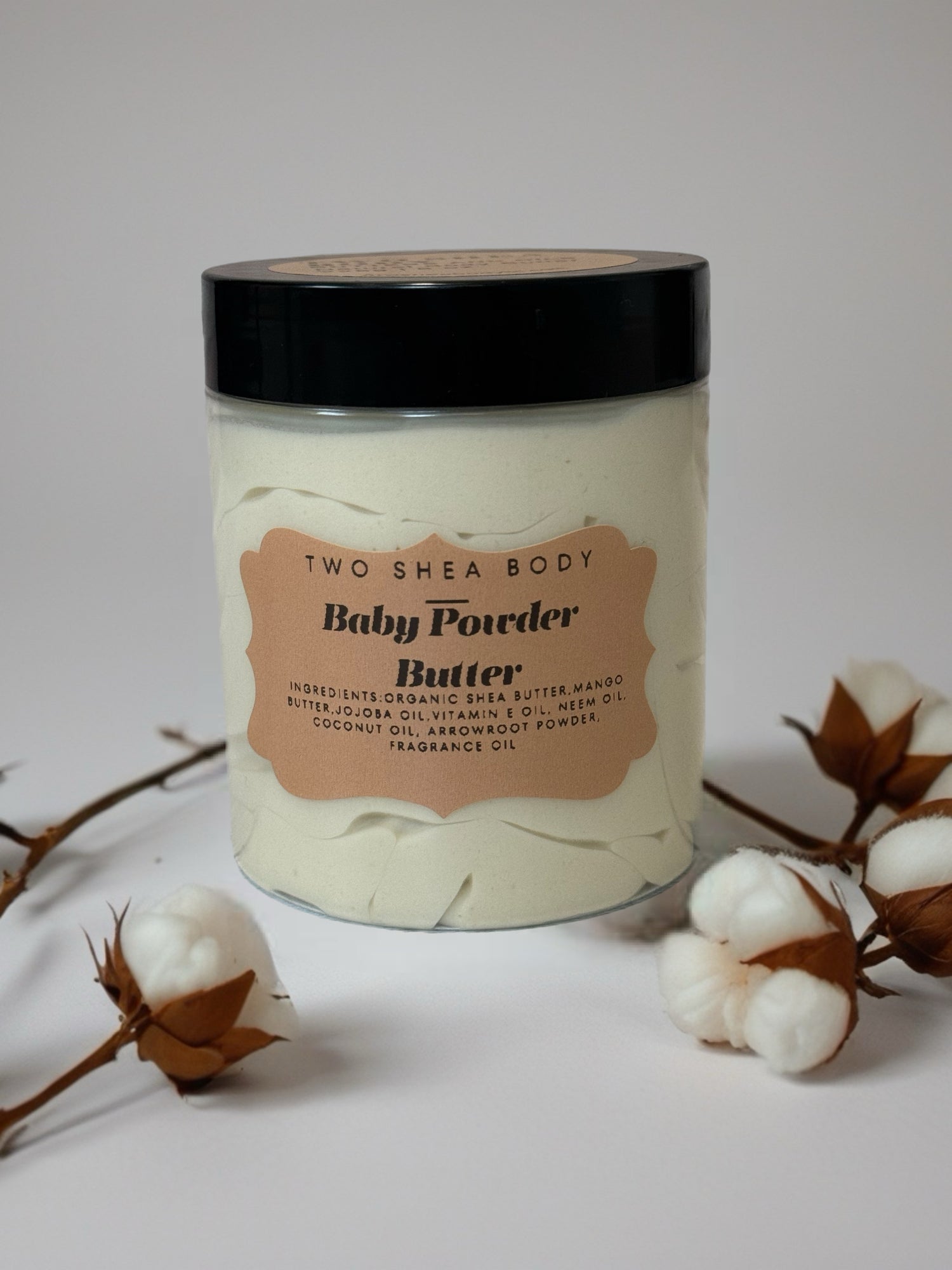 Baby Powder Butter is a classic powdery, clean scent. Nothing beats the smell of fresh baby powder. Packed with Two Shea Body’s “Six Main Ingredients!
